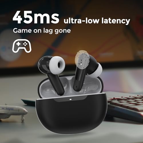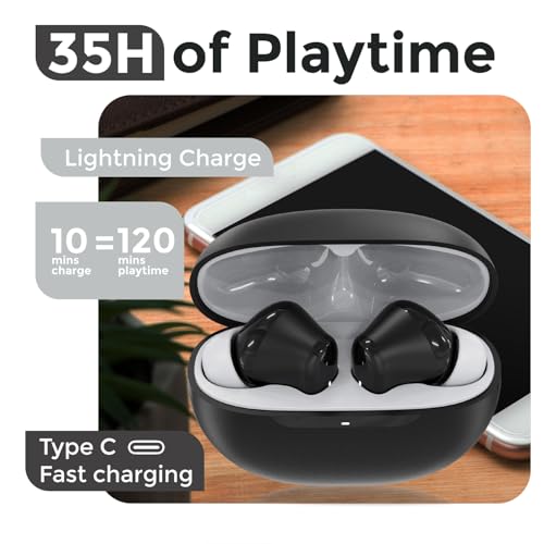 Tunifi Rockpods Newly Launched Truly Wireless in Ear Earbuds with 35H Playtime, Zen™ ENC Mic, 45ms Low Latency, 13mm Bass Drivers, Type-C Fast Charging, IPX5 Ear Buds TWS (Black)