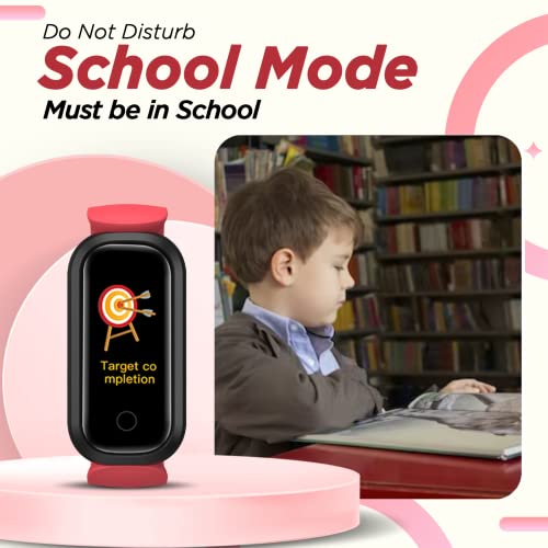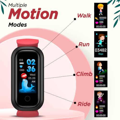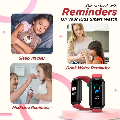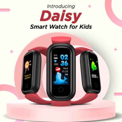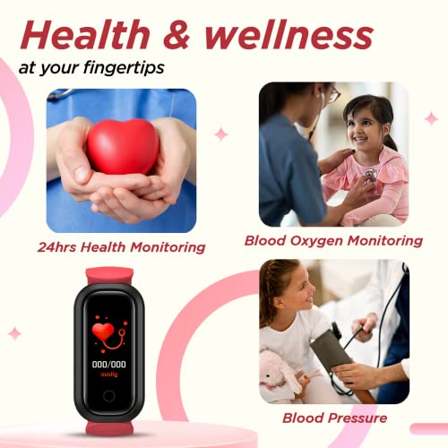 Turet Daisy Smart Watch for Kids —Champ Smart Band for Girls and Boys with SpO2, Sleep & Heart Rate Monitor, Health Activity & Fitness Tracker, Water & Medicine, IP68, 15 Days Battery (Blush Red)