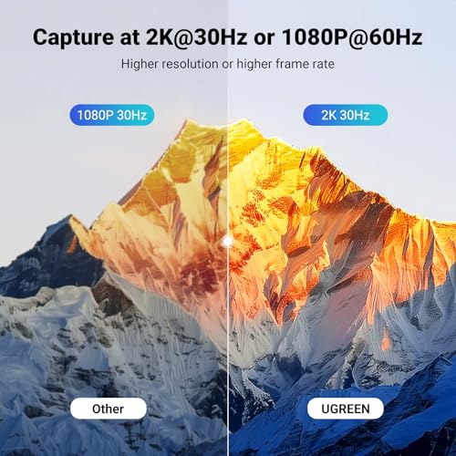 UGREEN 2K@30Hz HDMI Video Capture Card USB 3.0 4K@30Hz Passthrough Full HD 1080P 60FPS with Low Latency for Streaming Gaming, Recording, Compatible with Switch, PS5, Xbox, PC, Mac, Phone