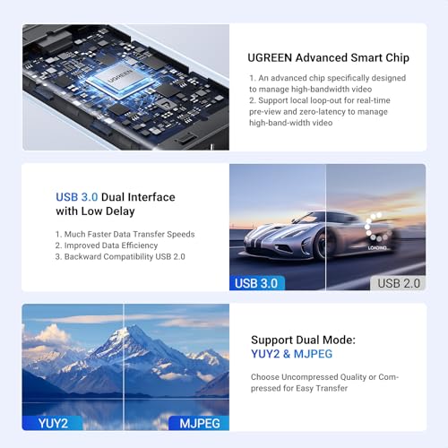 4K Input and Passthrough: UGREEN video capture card supports 4K@30Hz (4:4:4) input and 4K@30Hz loop-out. Built with an advanced chip specifically to manage high-bandwidth video and audio signals, support local loop-out for real-time preview and zero-latency monitoring, and ensure instant reactions. Note: PS4 and PS5 support this capture card when HDCP is turned off