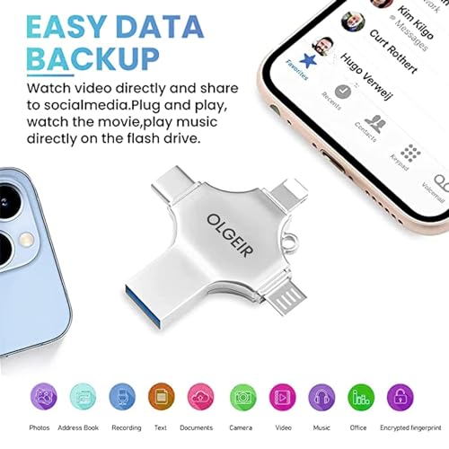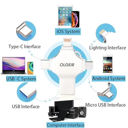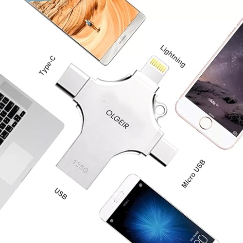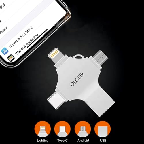 Universal Compatibility: This 4-in-1 flash drive features Micro USB, USB A, Type-C, and Lightning interfaces, making it compatible with iOS, iPad, Android, and PC devices. Ample Storage: With 64GB of storage capacity, you can conveniently store and access a vast amount of data, including photos, videos, documents, and more. Effortless Data Transfer: Seamlessly transfer files between different devices, freeing up space and ensuring your important data is accessible whenever and wherever you need it. Compact and Hangable Design: The mini-sized pendrive is not only compact but also hangable, allowing you to attach it to your keychain, lanyard, or bag for easy access on the go. Quick and Secure Backup: Use the built-in Lightning connector to back up your iOS and iPad devices, ensuring your valuable data is safe and easily recoverable.