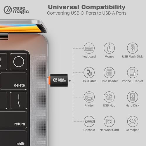 💼Universal Compatibility with USB A & Type C Device: The Case-Magic Type C to USB Adapter supports a wide range of devices including MacBook, iPad Pro, Android phones, Windows laptops, and more. Seamlessly connect USB-A peripherals to USB-C ports, making it your go-to adapter for daily use, travel, or remote work.
