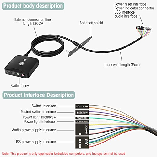 USB PORTS AND AUDIO JACKS: This computer power switch is equipped with 2 USB ports and audio jacks. It is more convenient to transfer data, download/upload files, etc. The newly added 3.5mm audio jack is the same as the jack on the PC host, but it is more convenient to use and there is no problem of cable short circuit. The installation is very simple and no soldering is required. It is perfect for replacing defective old power switch cables, or for any innovative projects you have conceived.