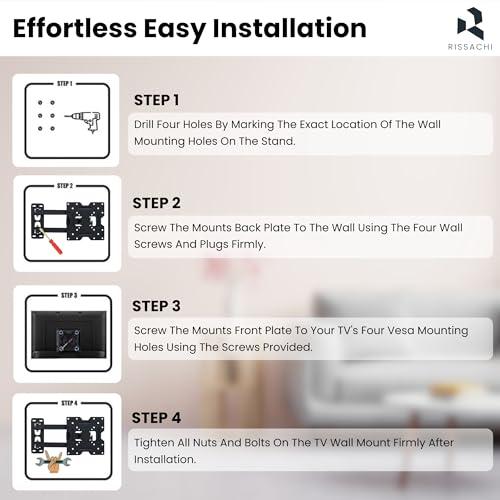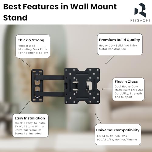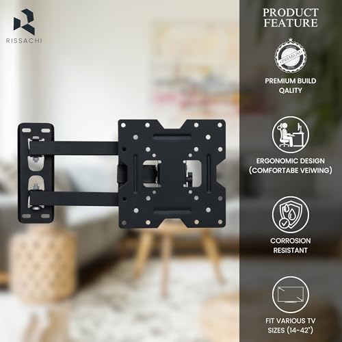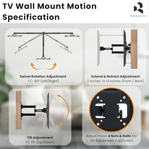 Full Motion Adjustability – Enjoy swivel (±180°), and extendable arm movement for the most comfortable viewing angle in any room – bedroom, living room, office, or hall.