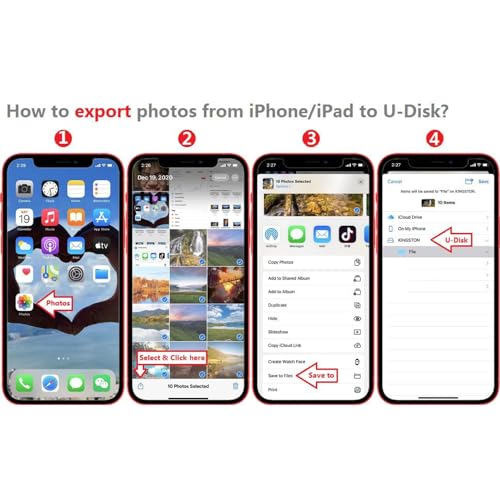 -【Plug & Play】:Easy to use, no need to download any application, just transfer your photos and videos from your pendrive to your phone or other devices. OTG is compatible for ios 13 and above.