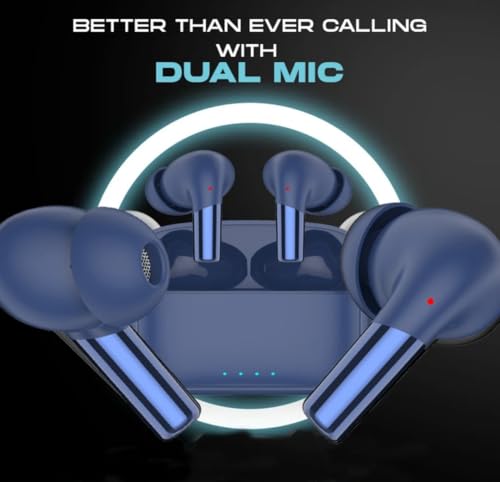 Wireless Bluetooth Earbuds with Charging Case, Navy Blue, LED Indicators