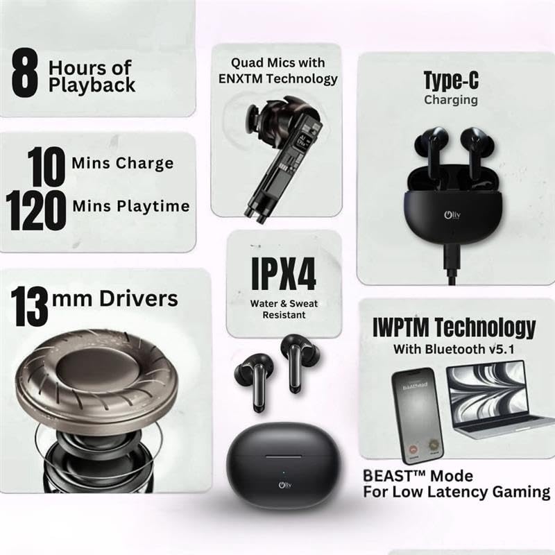 Experience premium sound and sleek style with the OlivLife Wireless Earbuds in Black. Designed with advanced Bluetooth technology, these in-ear headphones deliver stable connections, smooth pairing, and uninterrupted audio. The powerful sound drivers produce deep bass, crisp highs, and balanced mids, giving you an immersive listening experience across music, movies, and calls. With a long-lasting battery life supported by the compact charging case, you can enjoy hours of entertainment on the go. The ergonomic lightweight fit ensures maximum comfort during workouts, travel, and daily use, while sweat and splash resistance adds durability for an active lifestyle. Featuring smart touch controls for calls, music, and voice assistants, the OlivLife Wireless Earbuds combine style, performance, and convenience in one sleek black finish.