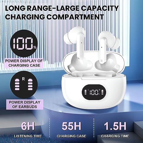 Wireless Earbuds,Bluetooth 5.3 Headphones,55 h Playtime LED Power Display Wireless Charging Case,LED Power Display Deep Bass Ear buds Waterproof Earphones Microphone Stereo Headset for TV Phone Laptop