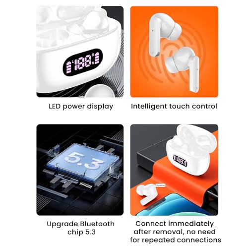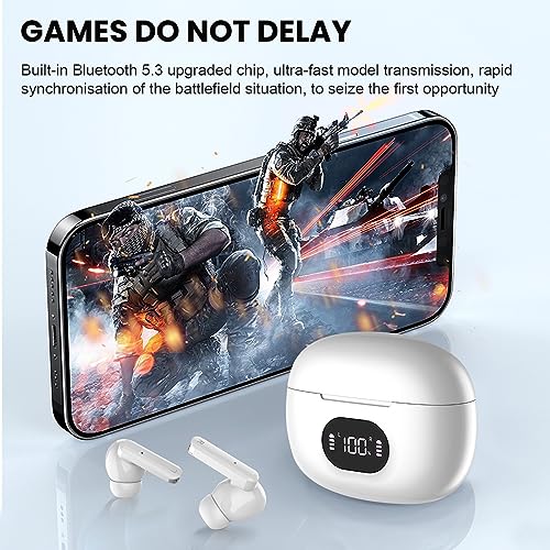 Wireless Earbuds, Bluetooth 5.3 Headphones, Playtime LED Power Display Wireless Charging Case Stereo Deep Base Earphones Waterproof Ear Buds with Built-in Mic for
