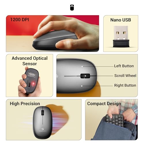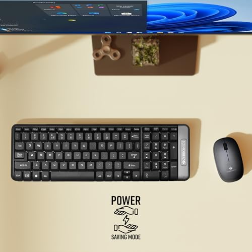 ZEBRONICS Companion 104 2.4GHz Wireless Keyboard & Mouse Combo, 100 Keys, Laser Printed Keycaps, Integrated Multimedia Keys, 3 Button Mouse, 1200 DPI, High Precision, Advanced Optical Sensor (Grey)