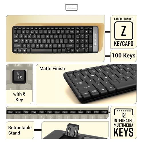 Zebronics Companion 104, Integrated Multimedia keys,100 Keys, Power Saving Mode, with ₹ key
