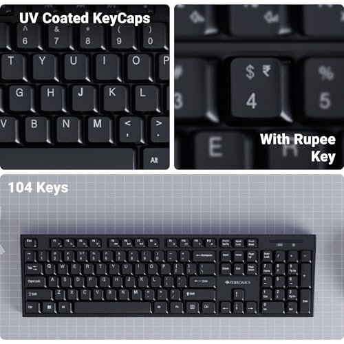 Boost your productivity and type effortlessly with the ZEB-Companion 304 Wireless Keyboard and Mouse Combo, crafted for comfort and functionality. The keyboard features 104 keys, including a dedicated ₹ key, 12 multimedia keys for quick access, and UV-coated keycaps for enhanced durability. Its retractable stand provides an ergonomic typing angle, ensuring comfort during extended use. Complementing it is the wireless mouse, designed for precision with 1600 DPI, 4 responsive buttons, and an ergonomic shape that fits naturally in your hand. A compact USB nano receiver connects both devices seamlessly, keeping your workspace neat and clutter-free.