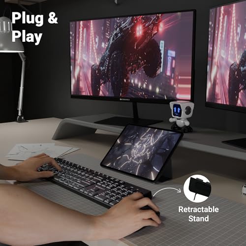 RETRACTABLE STAND: Provides adjustable height and comfortable typing, delivering ergonomic support for extended use.