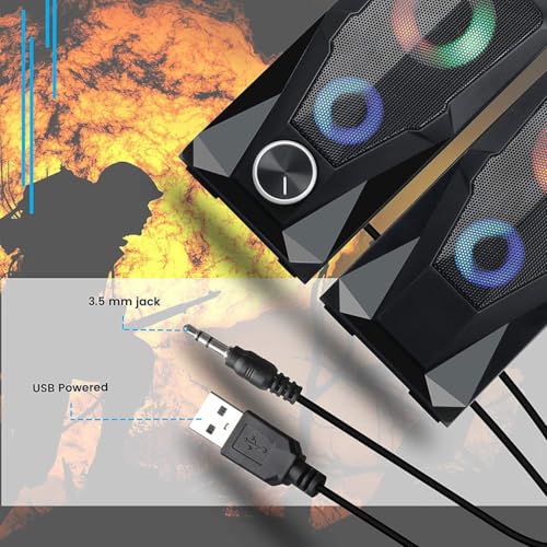 MODERN DESIGN: RGB-illuminated tower case with transparent side panel, complemented by RGB sound bar speakers for immersive setup